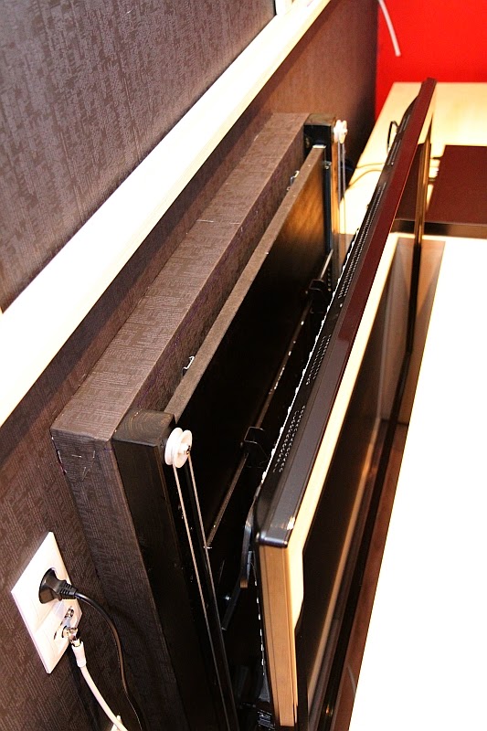 Als nächstes kümmere ich mich um den Korb (wollte Andreas mal drauf ansprechen) und muss am TV alle nötigen Kabel in einen flexiblen Kanal bringen und so verlegen, dass diese sich nicht mit der Hebemechnik ins Gehege kommen.